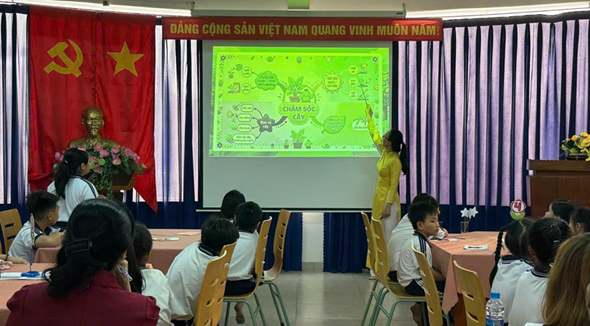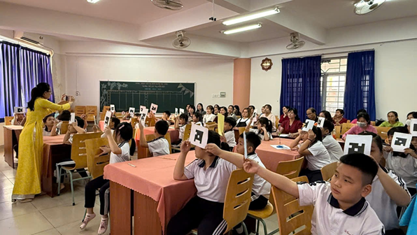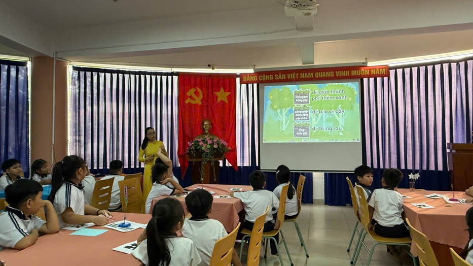 Phát triển năng lực và phẩm chất Tiết học góp phần phát triển rõ nét các năng lực cần thiết cho học sinh. Khi được tương tác trực tiếp, các em rèn luyện năng lực giao tiếp, tư duy ngôn ngữ, biết lựa chọn từ ngữ phù hợp và mạnh dạn trình bày ý kiến. Thông qua các hoạt động nhóm, học sinh được khuyến khích chia sẻ, lắng nghe và hỗ trợ bạn. Các em học cách hợp tác, tôn trọng ý kiến khác biệt và cùng nhau hoàn thành nhiệm vụ. Tiết học cũng giúp học sinh hình thành phẩm chất chăm chỉ và tự tin khi được trình bày trước phụ huynh và thầy cô tham dự. Tiết học góp phần gieo vào lòng học sinh tinh thần trách nhiệm, biết trân trọng và giữ gìn không gian xanh quanh mình. Mang lại giá trị tâm lí – Cảm xúc tích cực Một điểm nổi bật của tiết học mở chính là cảm xúc tích cực lan tỏa trong lớp. Học sinh được học qua trò chơi, hình ảnh, tương tác AI nên rất hào hứng, không khí nhẹ nhàng, vui vẻ. Phụ huynh cảm nhận rõ sự trưởng thành của con qua từng câu trả lời, từng ánh mắt tự tin. Giáo viên tham dự cũng có thêm góc nhìn mới về việc ứng dụng AI trong dạy học hiện đại.